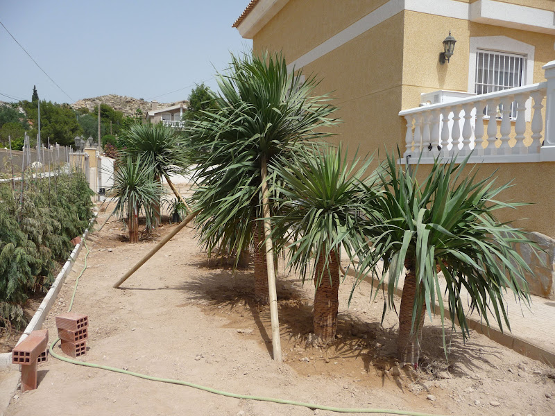 Los Dragos se han plantado siguiendo el diseño del proyecto,  a excepción de uno de ellos, ya que en la zona en la que iba uno de los pequeños nos hemos encontrado la tubería del gas de la vivienda y lo hemos tenido que desplazar, del grupo de tres pequeños a acompañar el de tamaño mediano del borde.