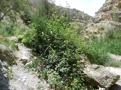 La zona del final de la senda, junto al salto de agua, estaba completamente llena de cañas y zarzas, que, aunque las habían eliminado manualmente voluntarios de la Universidad de Alicante, ya estaban creciendo de nuevo.
