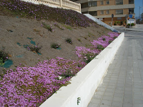 Otra aplicación a destacar de esta especie es su utilización para cubrir, y por tanto contener, pequeños taludes o desniveles de nuestro jardín. Así obtenemos una zona verde en la que normalmente hay que colocar elementos de sujeción de obra o madera. En las siguientes fotos se puede ver esta función, en la playa de Muchavista, El Campello.